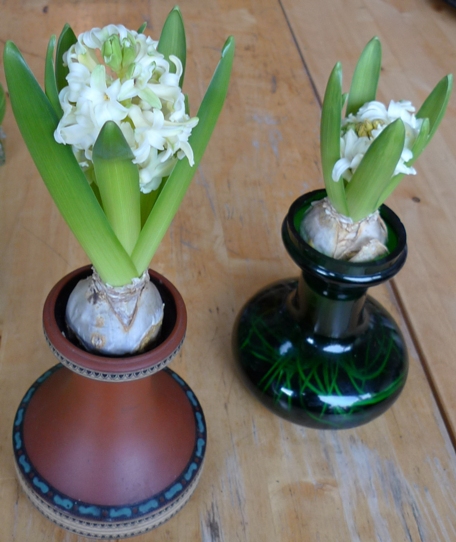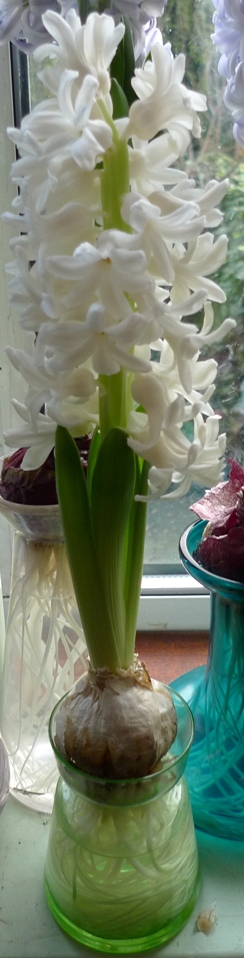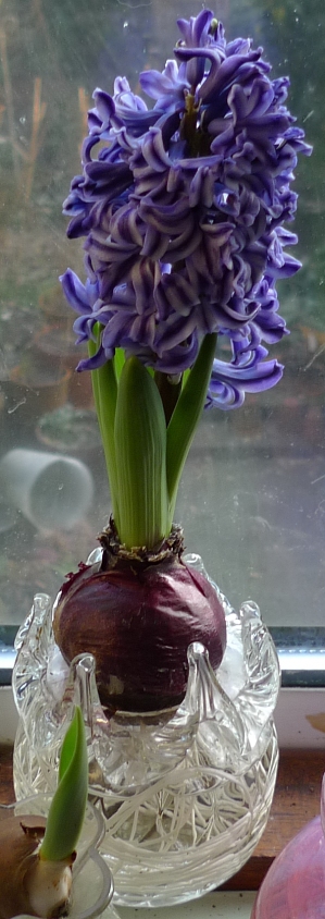 forced hyacinths in bloom in January