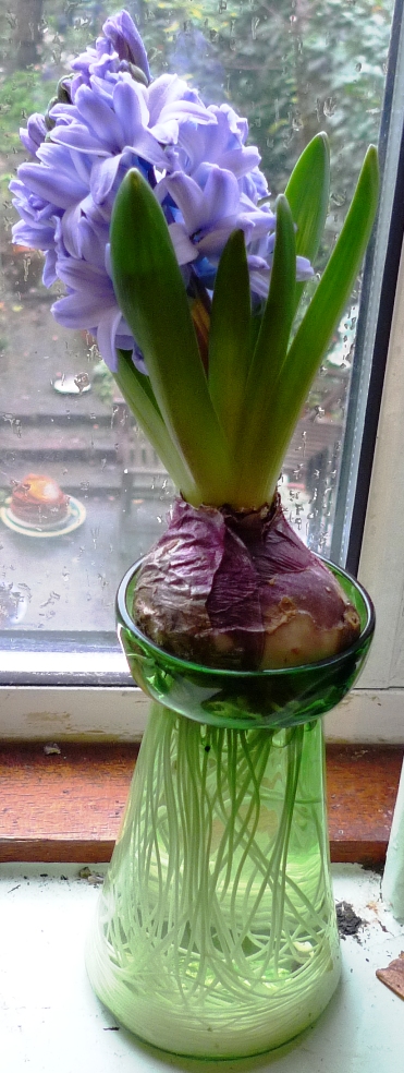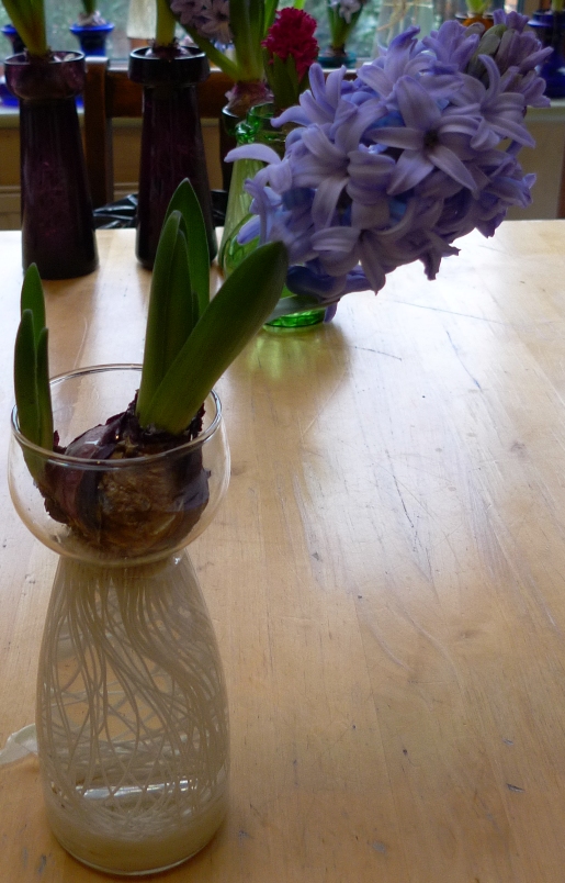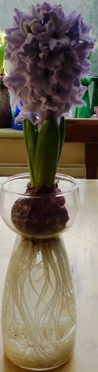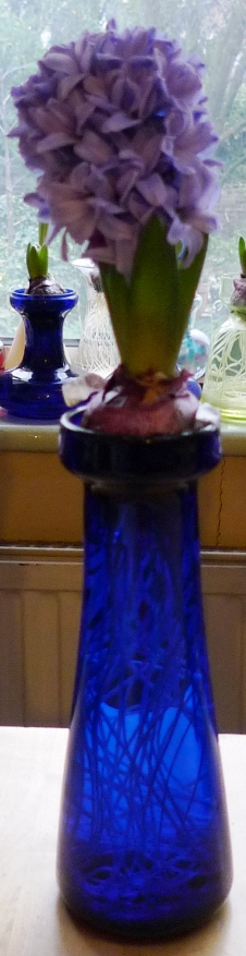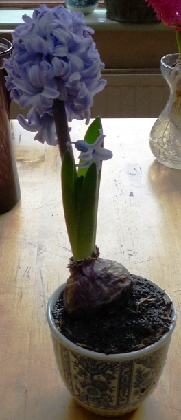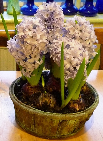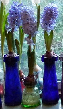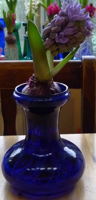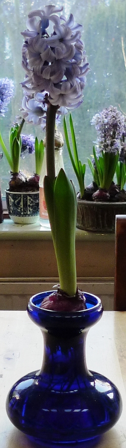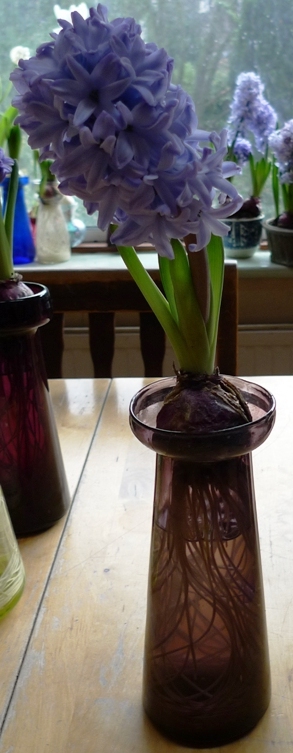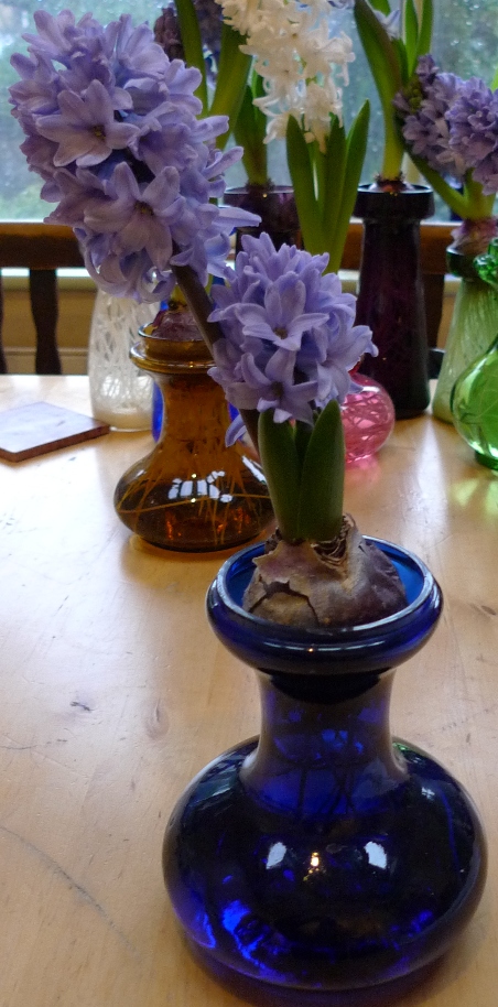 These are all the Delft Blue hyacinths on January 6th, arranged by supplier. I was hoping to do a comparison but they weren't all in bloom at the same time and some are still in the cellar at this point.