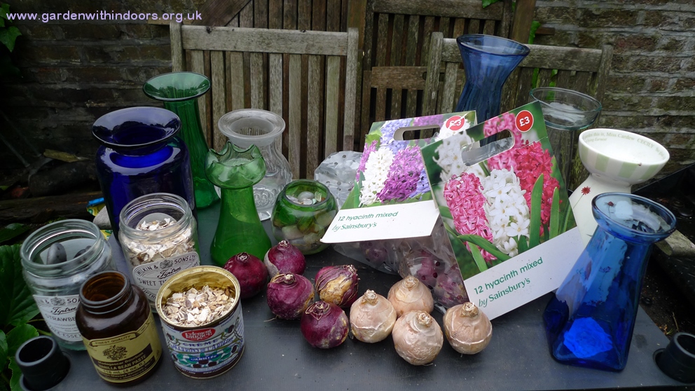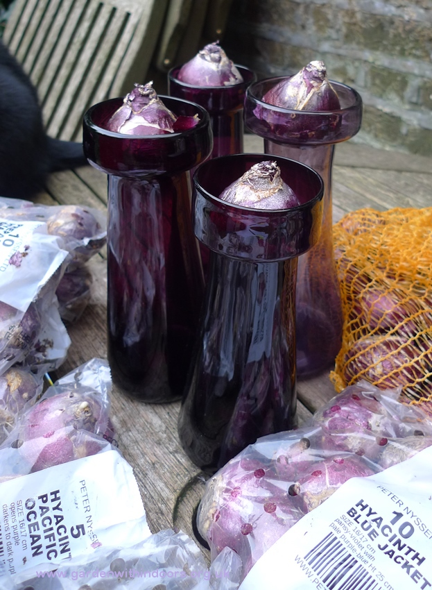 the next day, the last 3 hyacinths, 2 of which are above right, which I think will bloom as they have decent looking buds