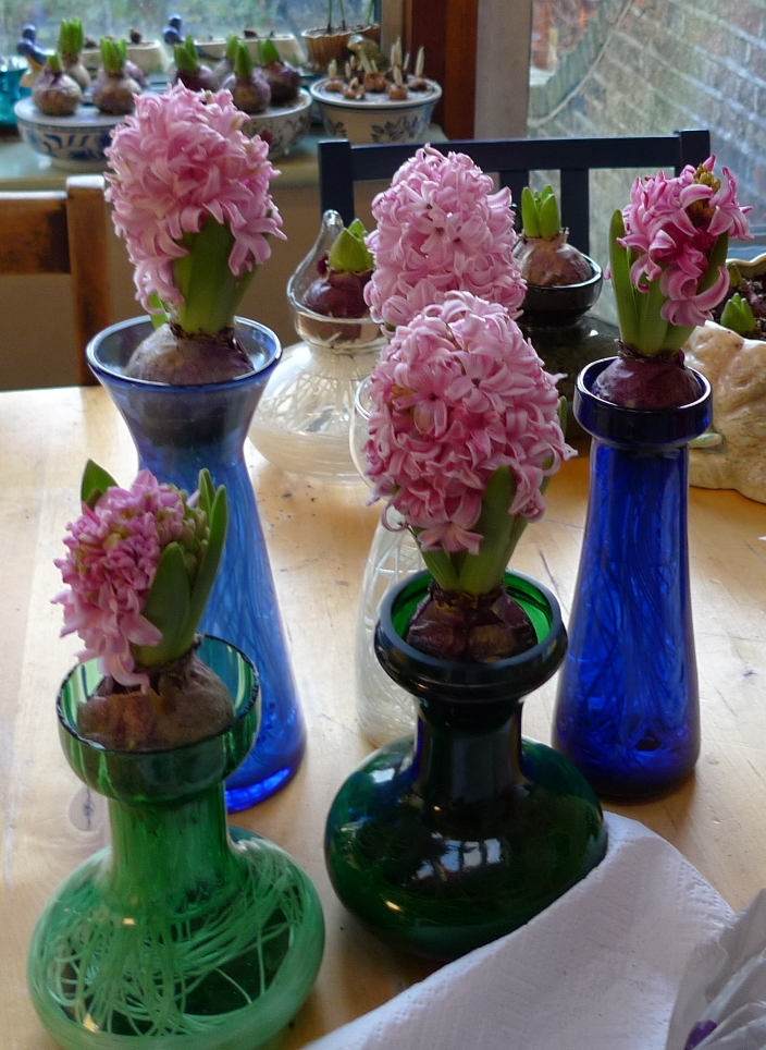 With limited space and a ridiculous number of vases and pots I have to be brutal and thin the hyacinths as soon as they've bloomed. So I will be discarding these today. Some never bloomed properly. Some are just past their best.
